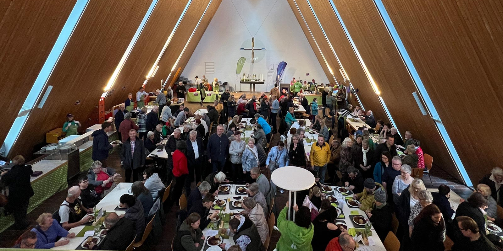 Vom 1. bis 15. März wird die Christuskirche Memmingen wieder zum „Esszimmer der Stadt“. Dann findet zum mittlerweile siebten Mal die beliebte Vesperkirche statt. Unter dem diesjährigen Motto „Jeder is(s)t hier richtig. Zusammen.Halten“ sind Menschen aus Memmingen und dem Umland herzlich eingeladen, zusammenzukommen, um gemeinsam zu essen, vielfältige Angebote und Kulturveranstaltungen zu genießen und dabei Gemeinschaft zu erleben, über alle gesellschaftlichen Grenzen hinweg.